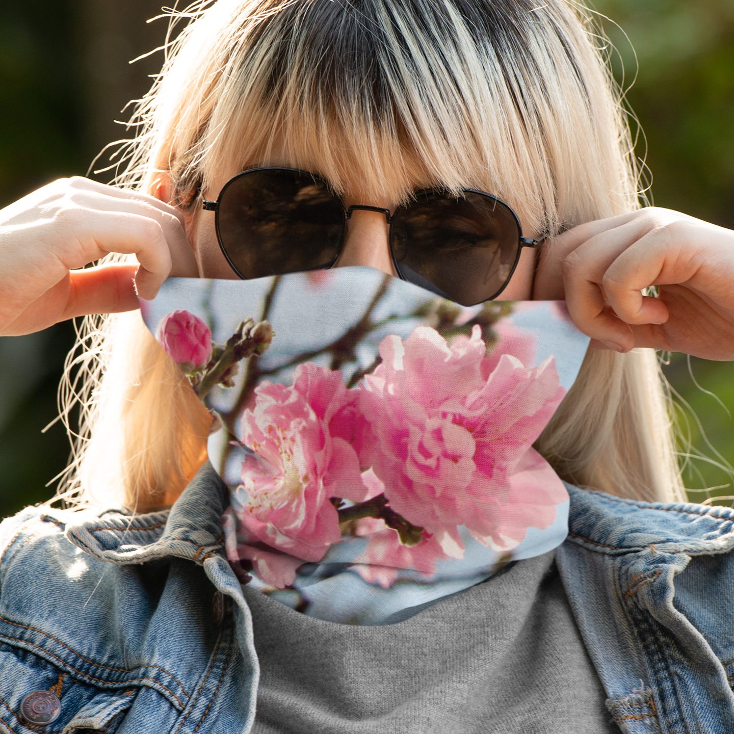 Como un suspiro de primavera que se congeló en el tiempo. Esta bandana muestra una fotografía real de flores de durazno en todo su esplendor. Suave, delicada y femenina, es ideal para quienes conectan con la belleza natural, sin exageraciones.