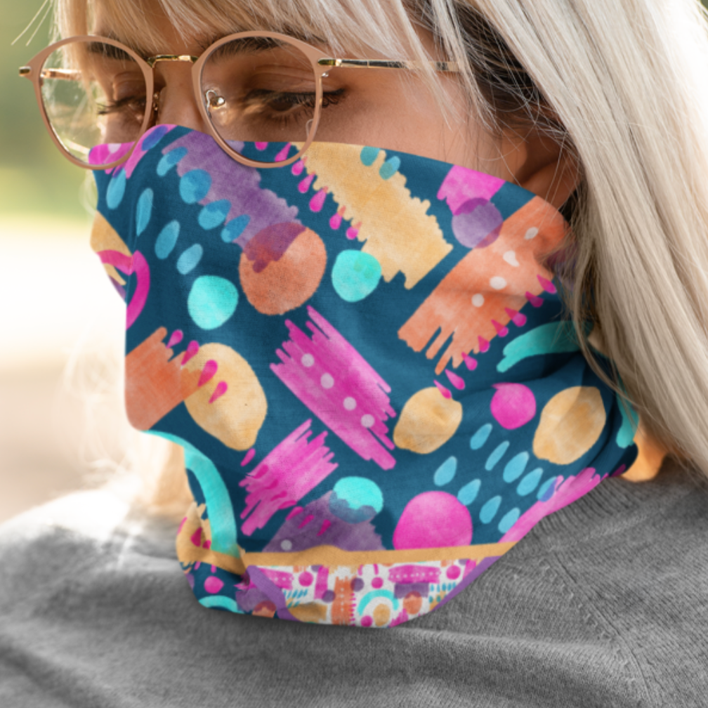 Un lenguaje secreto hecho de manchas, trazos y círculos que parecen bailar en un fondo azul profundo. Esta bandana mezcla el arte urbano con una vibra galáctica, como si una caja de crayones se hubiera desbordado en el espacio. Perfecta para espíritus libres que no siguen reglas, solo colores. 💥🌈🪐