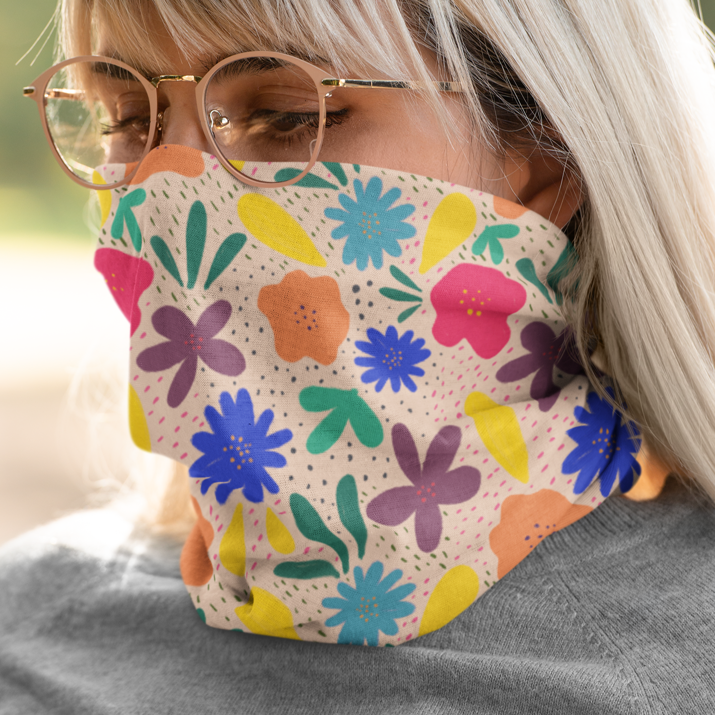 Flores sueltas, colores vivos y un fondo claro que invita a soñar despierta. Esta bandana tiene la frescura de la mañana y la alegría de una libreta llena de ideas. Para quienes ven belleza en cada detalle cotidiano.