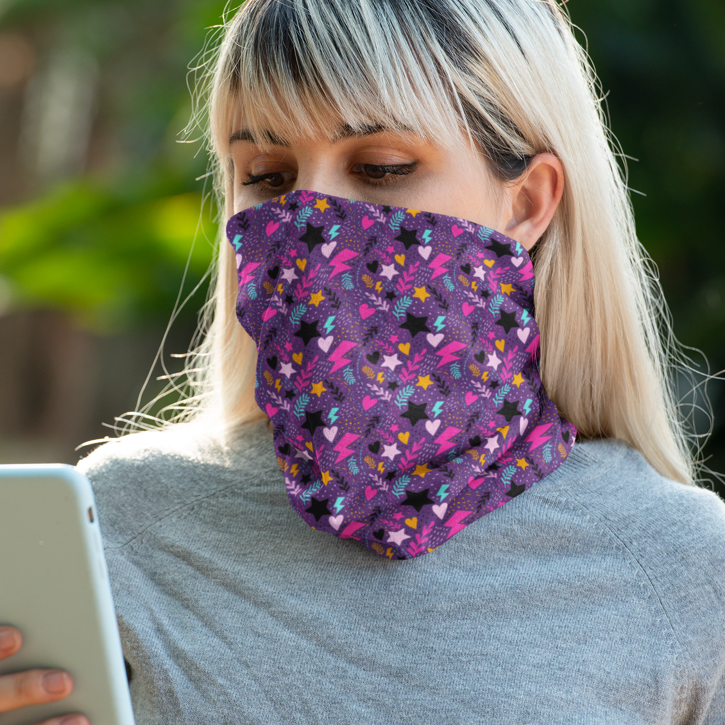 Corazones, rayos y estrellas en una tormenta de color. Esta bandana es para las que aman con fuerza, piensan en rosa y viven con actitud. Un clásico Bo! para liberar tu estilo más power.