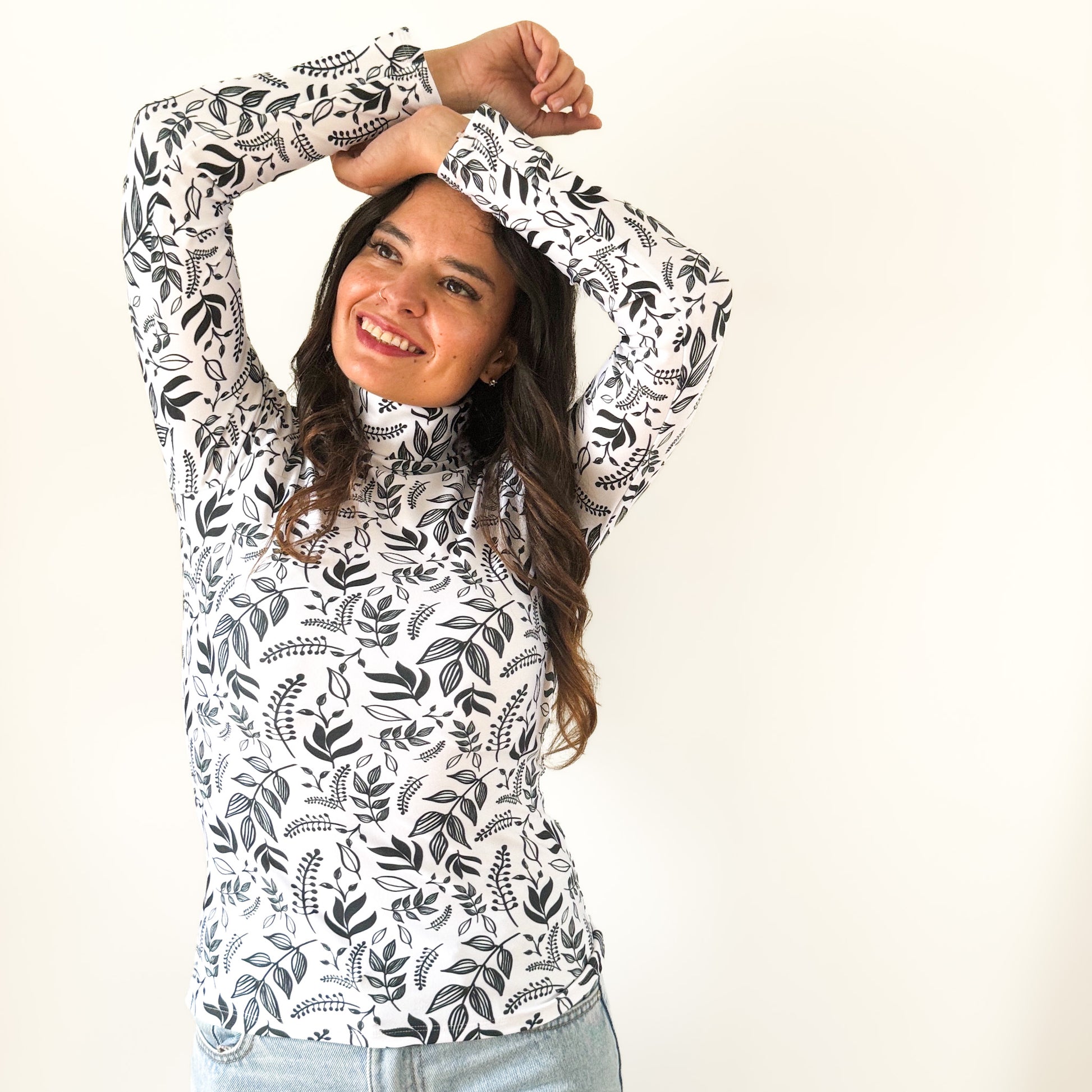 Un universo de hojas, ramas y semillas que se despliegan en blanco y negro como si fuera un bosque encantado minimalista. Fresco, elegante y súper combinable.