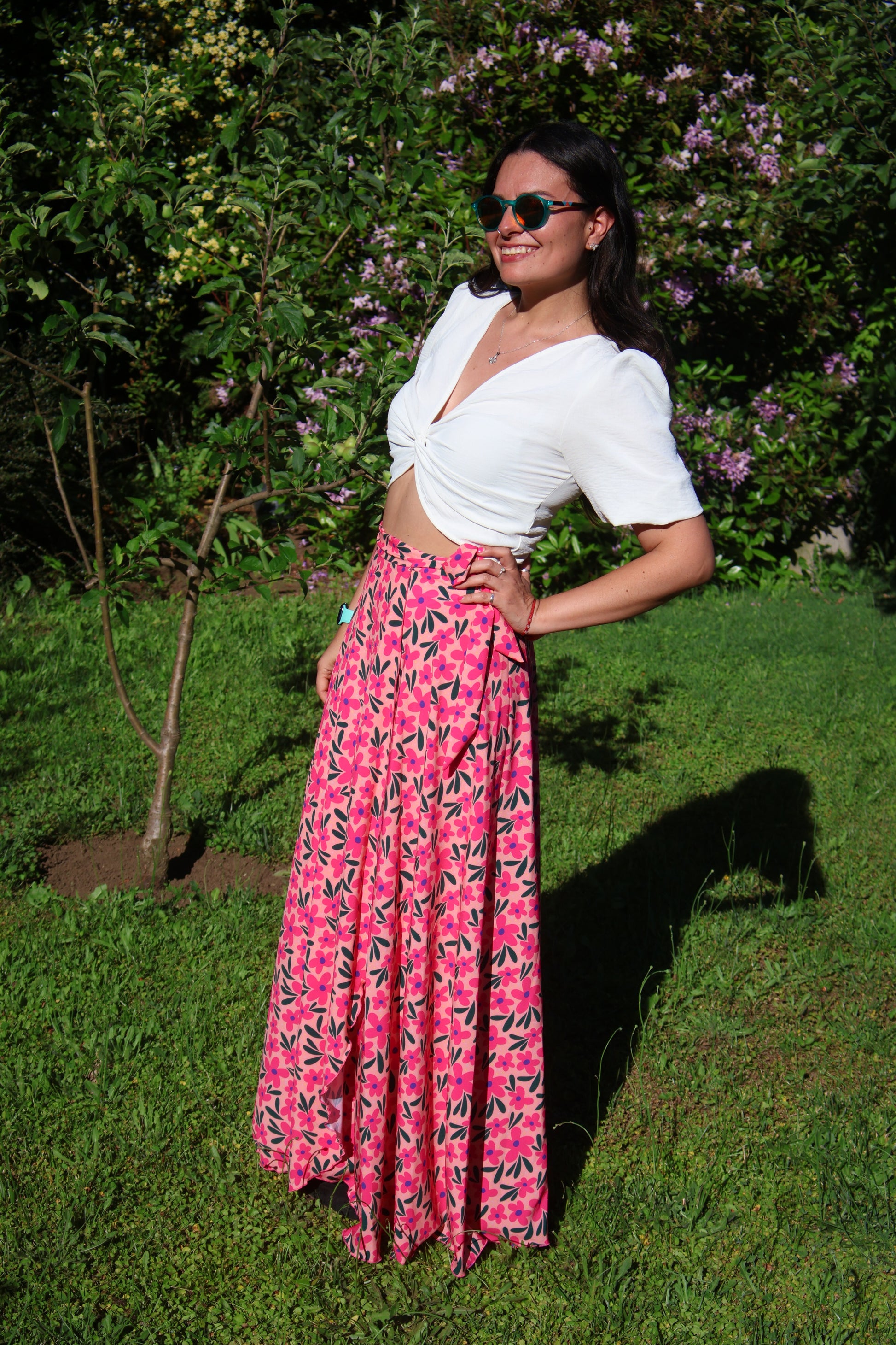 “Flor Rosa” es la definición de energía y feminidad en formato Bo!. Un jardín completo de flores en tonos rosados intensos, fucsias chispeantes y detalles verdes que crean un contraste precioso sobre un fondo coral luminoso. Es una falda que ilumina, alegra y transforma cualquier outfit con solo ponértela.