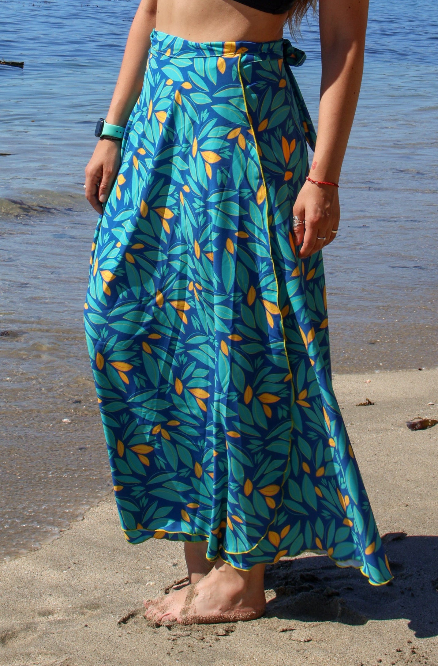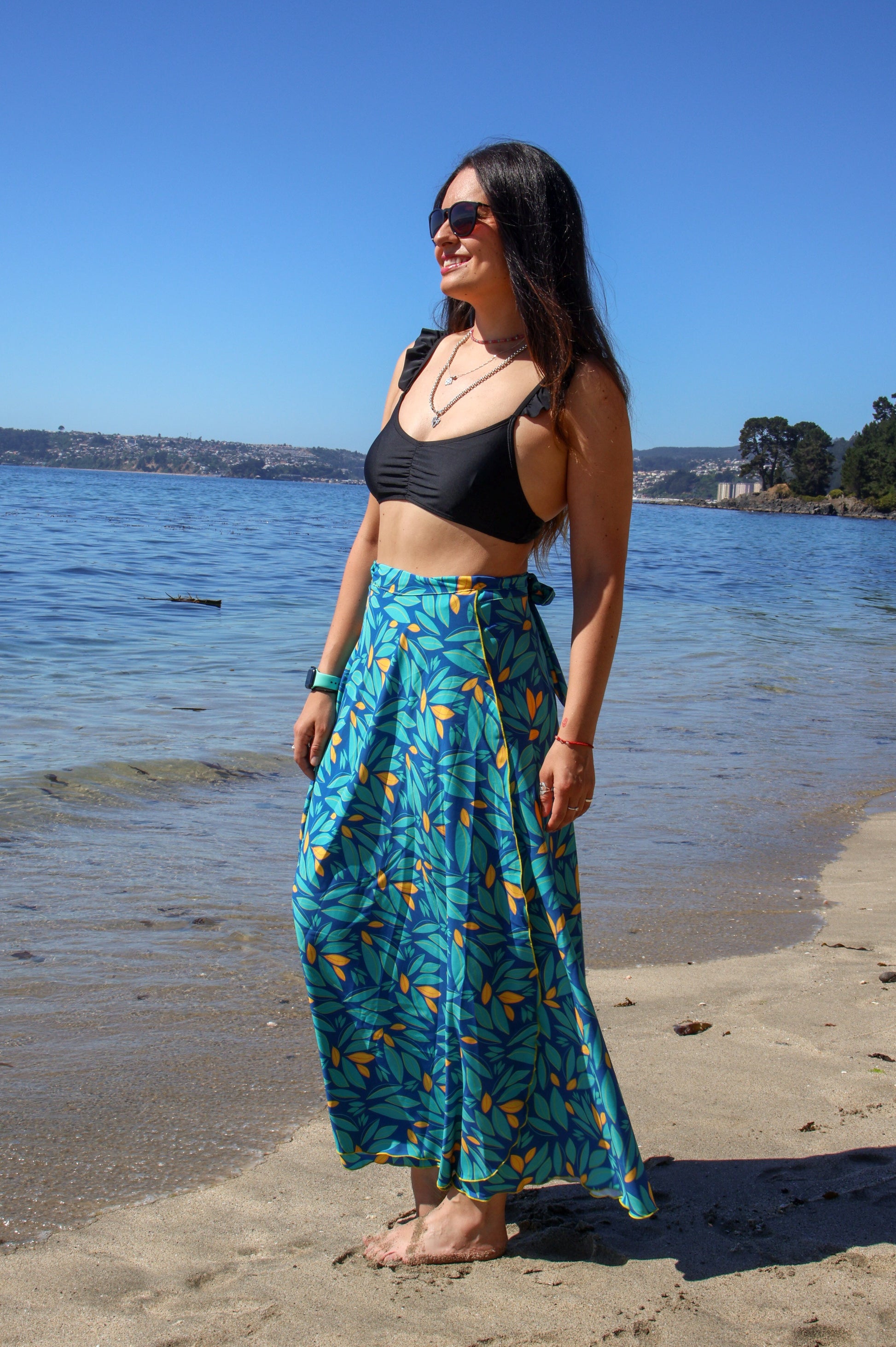 Relajada pero con personalidad. Su corte envolvente y su caída suave hacen que se mueva precioso al caminar. Combina increíble con tops neutros, bikinis, sandalias o incluso zapatillas. Es esa falda que se siente liviana, libre y llena de onda.